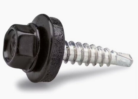 Farmarskruven med svart bricka, i storleken 4,8x20 mm, finns i förpackningar om 250 stycken. Den är designad för utvändig infästning av byggplåt och kombinerar effektivt borrning och gängpressning.