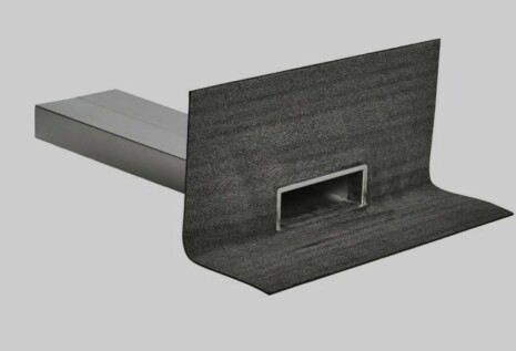 Rektangulär takavloppstratt avsedd för avvattning från både platta och låglutande tak täckta med takpapp via murkrans. Utkastaren har en 90° böjd fläns för montering i linje med takytan, vilket säkerställer effektiv dränering.