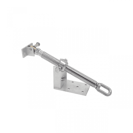En teleskopisk fönsteröppnare med skruv, som är särskilt utformad för bottenhängda fönster med kullriga gångjärn.
