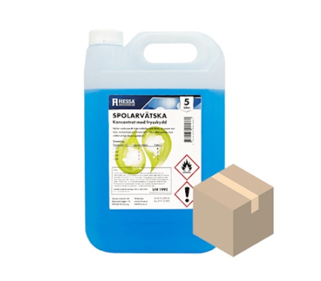 Färdigblandad spolarvätska i en 5-liters förpackning.