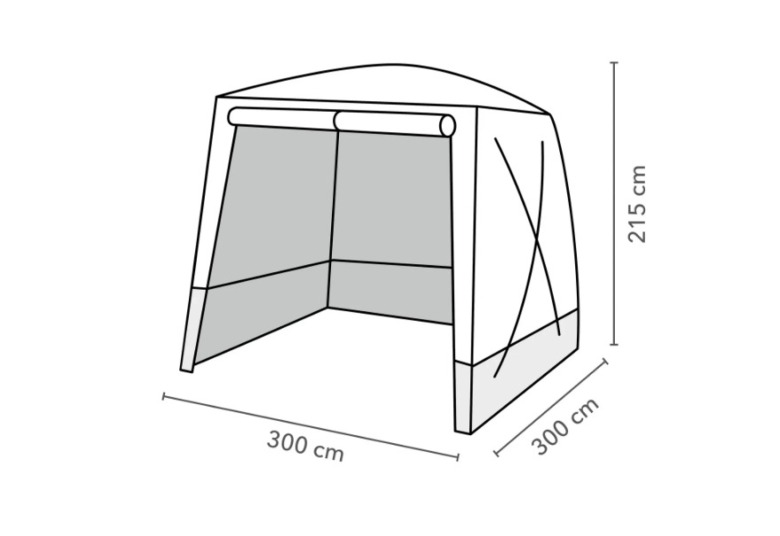 Mått: L 300 x B 300 x H 215 cm, Vikt: 38 kg