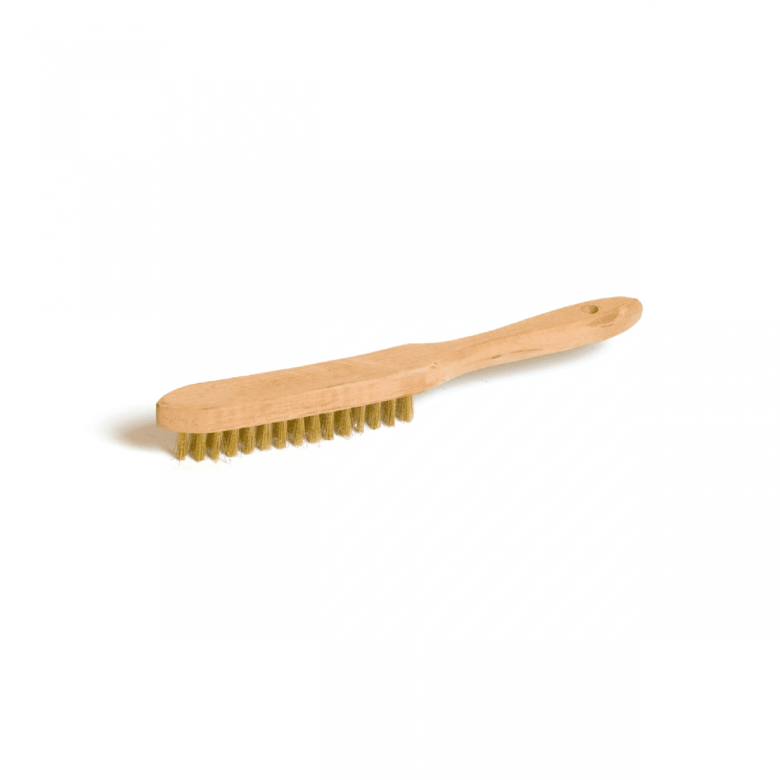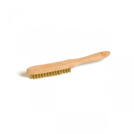 Mässingsborste med tre rader borst och ett trähandtag. Borsten har mässingstrådar med en diameter på 0,30 mm, vilket gör den idealisk för rengöring av grova ytor som trä, betong, sten och järn där en mjukare ytbehandling önskas jämfört med en stålborste. Borsthöjden är 24 mm och borstens totala längd är 280 mm.