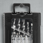 Varje borr i setet är utrustad med en extremt motståndskraftig hårdmetallspets med en hårdhet på 89 HRC och ett trubbigt skär. Detta möjliggör snabba och effektiva framsteg vid borrning, även i de mest robusta materialen.