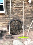En hornsugga med kraftiga naturborst och ett skaft av trä. Borsten har en tjo...